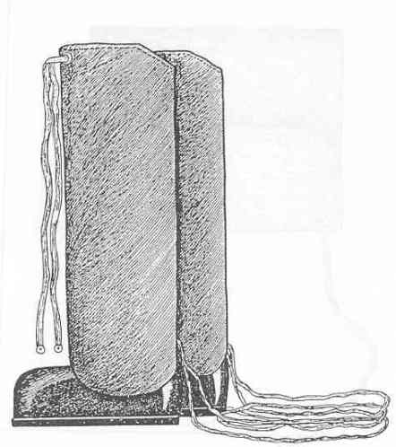 At the rear bottom of the upper, just above the sides of the slipper, there is attached a cloth loop through which a 11.2 foot tape is passed. The maximum length of the boots is 2.8 feet. |