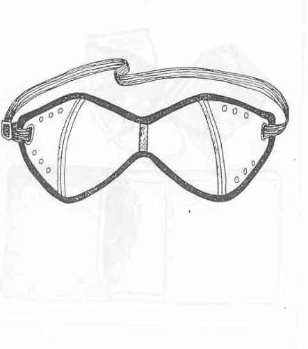 These eyeshields serve to protect the eyes of the wearer against dust and strong sunlight, the colorless type being suitable only for the former. |