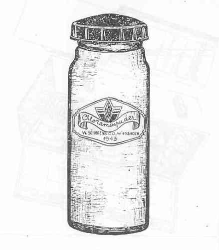 The label on the bottle is marked "Chloraminpuder". Manufacturers' markings are also present. |