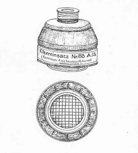 The blue band of paper around the canister is marked as follows: "Filtereinsatz Nr. 88 A/3 (Filtereinsatz A mit Schwebstoffilter und Wattervorfilter)". |