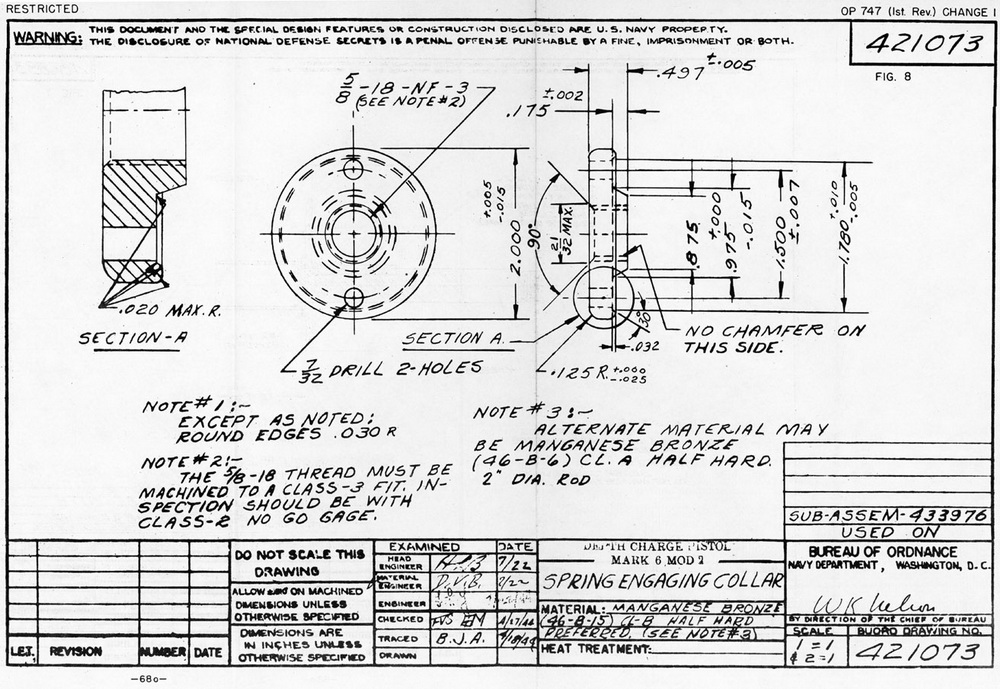 DEPTH CHARGE PISTOL MARK 6 MOD. 2 AND BOOSTER EXTENDER MECHANISM