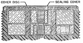 General. Fuze Mk 44 Mod 2 (Auxiliary Detonating) is identical with Fuze Mk 44 Mod 1 except for a modified cover disc and the inclusion of a moistureproofing sealing cover. Fuze Mk 44 Mod 2 version of this fuze was designed for use in rocket ammunition. It is essentialy a booster which houses two off-center rotors (upper and lower) carrying a detonator and a lead-in respectively which are locked out-of-line (unarmed position) by spind-held detents. Below the rotors are a fixed lead-in and a tetryl booster charge. |