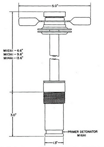 Modification - M112, M113, M114 will take only Primer Detonator M16. M112A1, M113A1, and M114A1 are modified to take Primer Detonator M16A1, but can also take Primer Detonator M16. |
