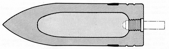 Base Ignition Fuzes Mk 8 Mod 5 or Mk 2 Mod 9 (without tarcers) may be used in this projectile, but the Mk 8 Mod 4 with integral tracer is preferred. |