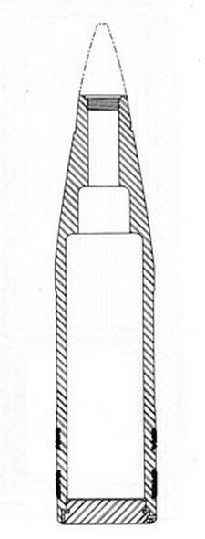 The projectile is identical in all respects to the Mk 43, except that it has a double ro-tating band. |