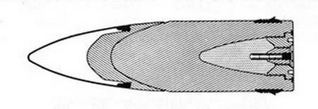 This projectile is used only on the battleships New York and Texas. It is the same as the Mk 16 Mod 8, except for a shortened windshield. |