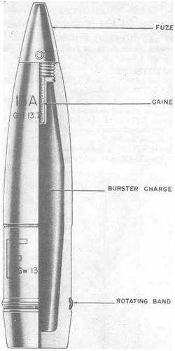 | H.E. PROJECTILE FOR FOR LONG DISTANCE USE IN FIELD HOWITZER, 105-MM |