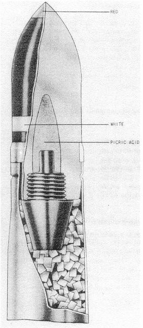 Remarks: This projectile is constructed of high grade steel. It has no sharply difined bourrelet. It uses a small Mk 1 base fuze which also acts as a base plug. |