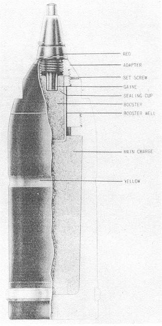 Remarks: The body of this projectile is painted black over-all. There is a shallow groove immediately below the bourrelet which may be painted yellow or green. |