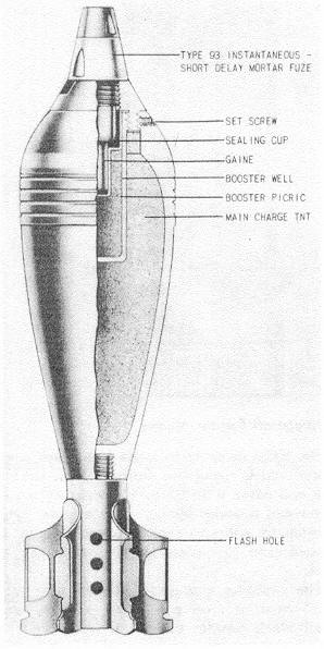 Fuzing: Type 93 instantaneous short delay mortar fuze. |