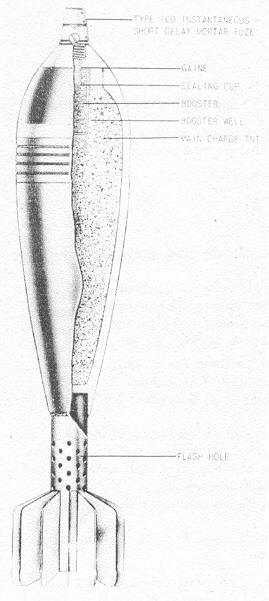 Fuzing: Type 100 instantaneous short delay mortar fuze. |