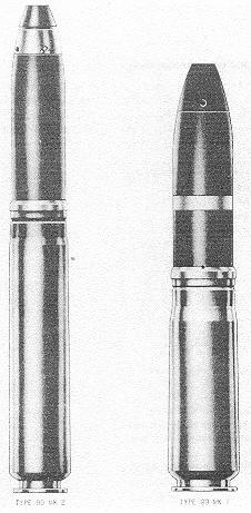 Both sizes use the same projectiles and fuzes, but there are a greater number of types and modifications of rounds in the smaller size. |