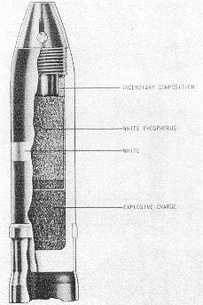 Remarks: The body of all projectiles (basic and modifications) is of steel, with one cavi-ty. The base of the cavity contains TNT, above which is an aluminum cannister white phosphorus. The cannister is surrounded by a graphited, flake nitrocellulose incendiary mixture. The Model 4 projectile eliminates the TNT and has a longer white phosphorus cannister. |