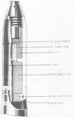 hole, drilled through the septum of the pro-jectile. A black-powder train