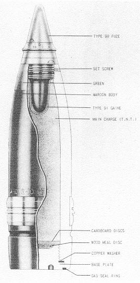 Length of complete round, with type 98 fuze: 46.0 inches. |