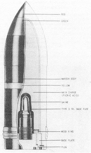 Fuzing: Type 3-year Mk 1 base fuze. |