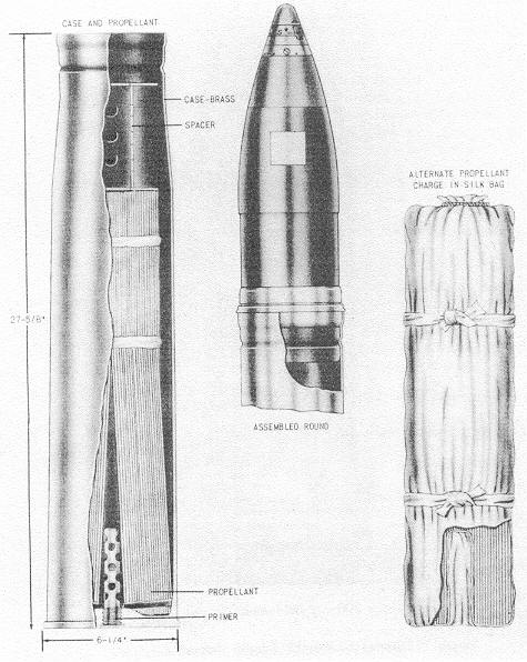 In the incendiary shrapnel round the sticks of propellant were tied together and placed in the case without being enclosed in the customary coarse silk bag. The latter arrange-ment may be a new trend not necessarily limeted to the round in which it was first found. |