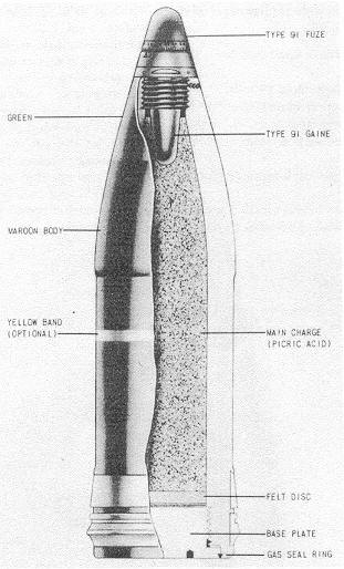 Filling:Cast picric acid (shimose): 6.60 pounds. |