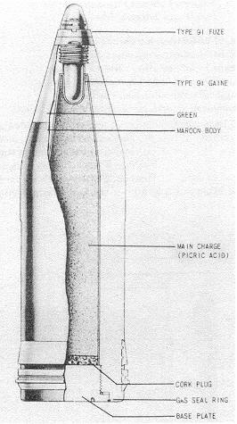 Filling: Cast picric acid (shimose): 6.8 pounds. |