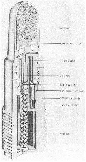 Construction: Excepting the set-back plunger and gaine, this fuze