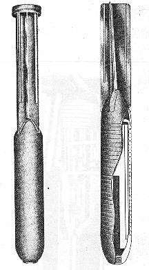 Type Mtr.: This bomb is very similar to the Type F in appearance, but differs in construc-tion of the body. The body is a double-walled steel cylinder containing steel shrapnel embedded in concrete. In manufacturing the bomb, the concrete-shrapnel filling into the base of the bomb and then the tail unit was screwed into the outer wall of the bomb. |