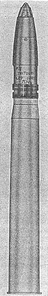 The projectile has double rotation, band with a space of 10 mm between them. The com-plete rounds weigh 10.645 kg and are 866.7 mm long. The propelling charge is C2 weigh-ing 1.470 kg |