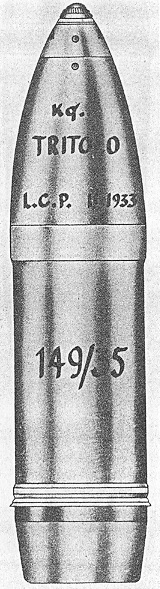 The projectiles for the 149/40-mm and 149/35-mm guns differ from the 149/13-mm pro-jectiles in diameter of the rotating band. |
