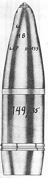 The weight of this projectile depends upon the type of filling. |