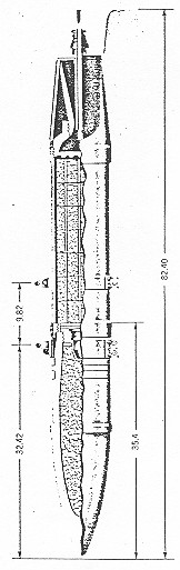 The tail unit consists of four (4) pressed steel fins wel-ded to a conical section. The tail assembly is fitted over the venturi of the rocket motor. |