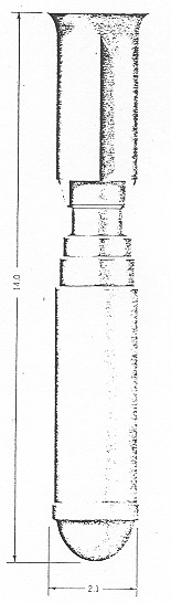 The bomb is composed of spot welded sheet metal sec-tions. A cylindrical sheet metal casing is pressed over the spot welded sections for added strength and frag-mentation effect. |