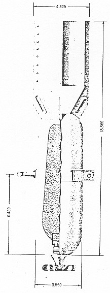 The bomb body consists of a cast steel cylinder tapering in an ogive to the nose. The nose is threaded internally to receive the fuze. |