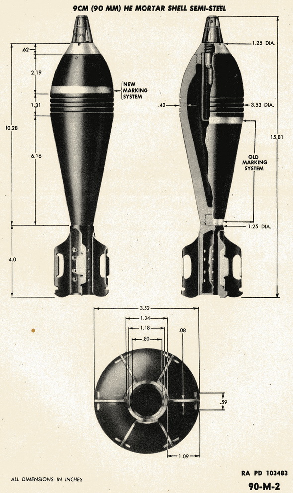 The model number of the mortar from which this projectile is fired has not been determined. |