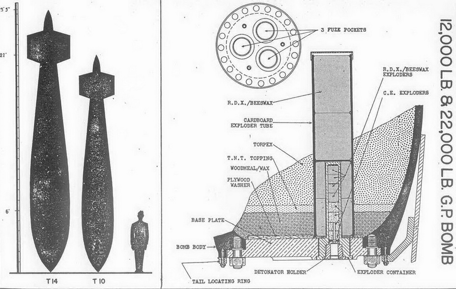 The T14 is American designation for the British 22,000 lb. D.P. "Grand Slam" bomb. |
