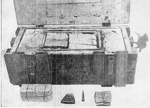 Patronenkästen sind verschieden. Am meisten bekannt ist der unge- strichene Kasten Modell 1906–1923 (siehe Abbildung) |