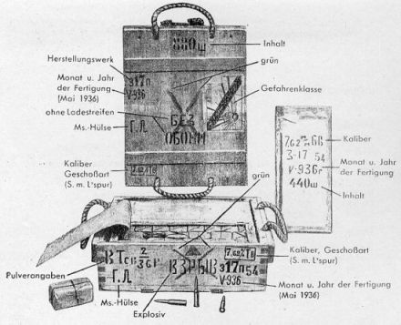 | 22 Päckchen (440 Patronen) in luftdichtem Zinkkasten. |