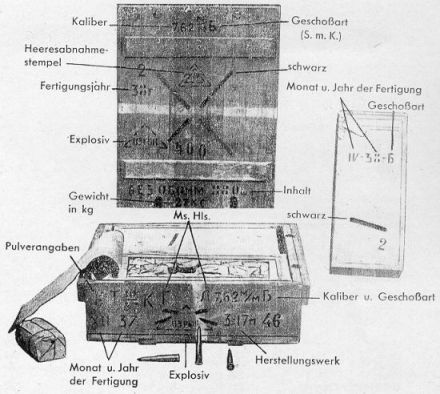 22 Päckchen (440 Patronen) in luftdichtem Zinkkasten mit schwarzem Farbstreifen.