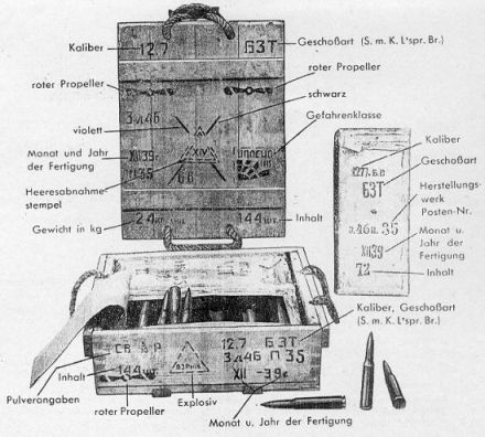 12,7 mm Patr (r) gibt es auch mit Randhülsen. 12,7 mm Patr (r) mit Randhülsen lassen sich jedoch nur aus dem 12,7 mm MG russ. "ШБАК" verschießen. |