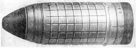 | Quadratisch gerillter, verzinnter Fluß- | Granatkörper: Anstrich mit Silberbronze- |