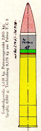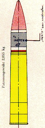 Kommt auch als Übgr vor. Dtsch Ben dann: 4,7 cm Sprgr Patr Üb 177/91 (i) – ital 47/32 Instr –. Als Kennzeichen ein schwarzer Ring über dem Füh-rungsring und ein weißer Ring unter der Zentrierwulst. |
