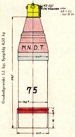 Anmerk.: 1) 7,5 cm Nbgr 259/52 (i) mit Phosphorfüllung