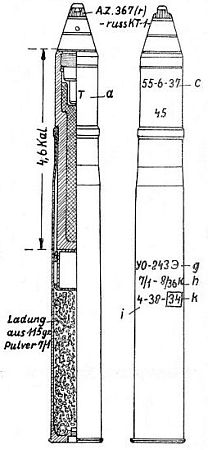 Munition der 4,5 cm Kw K 184/5 (r) - russ 38 - |