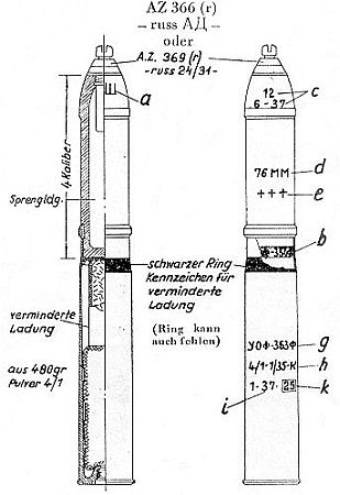 Munition der 7,62 cm Inf Kan Haub 290 (r) - russ 27 - |