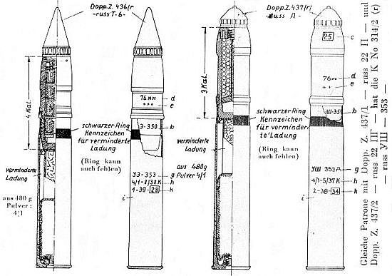 Munition der 7,62 cm Inf Kan Haub 290 (r) - russ 27 - |