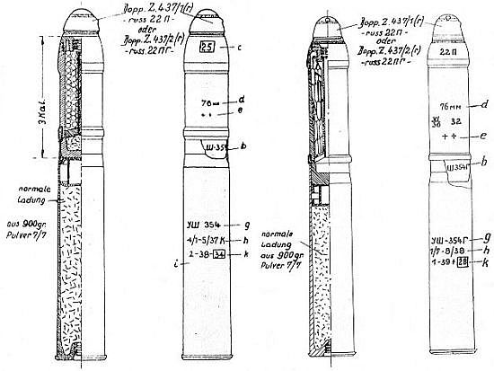 Munition der 7,62 cm F K 295/1 (r) - russ 02/03 L/30 - |
