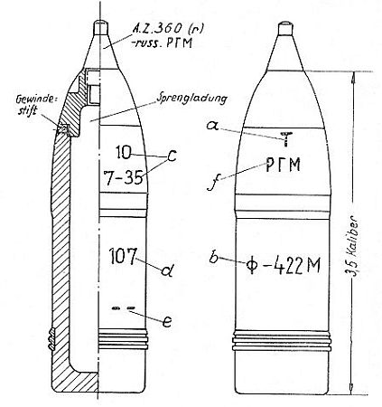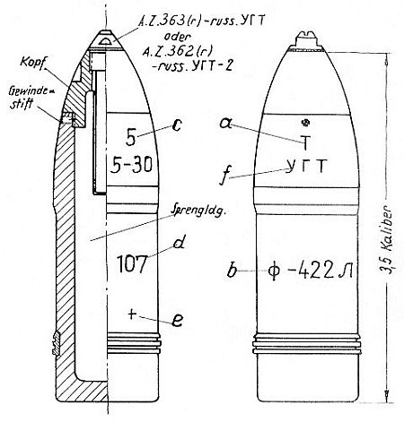 Munition der 10,7 cm K 352 (r) - russ 10/30 - |
