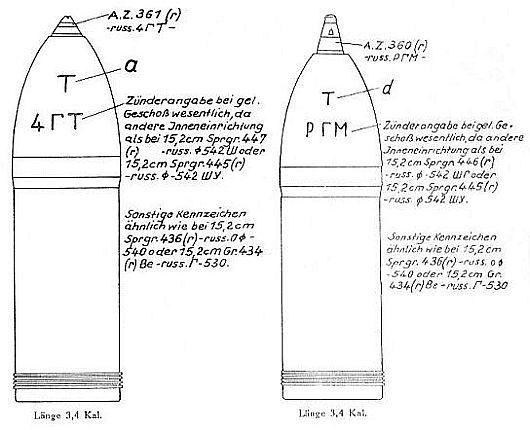 Munition der 15,2 cm K 433/2 (r) - russ 10/34 - |