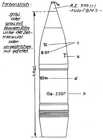 Munition der 15,2 cm s. F H 443 (r) - russ 38 - |