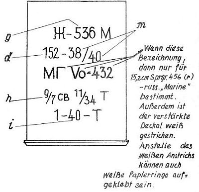 Darf nur für die 15,2 cm Sprgr 456 (r) – russ МОРСКНЙ (deutsch: Marine) –
