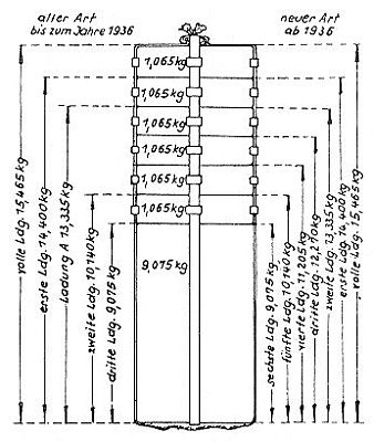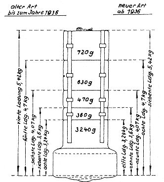 Bildliche Erläuterung des Ladungsaufbaues der vollen veränderlichen Ladung 503/1 (r) mit den Teilladungsgwichten aus Pulver 15/7 |