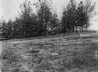 Jede Vorrichtung legt man durch einen an der Abzugsseite einzuschlagenden Holz- oder Eisenpfahl fest (Bild 27). |